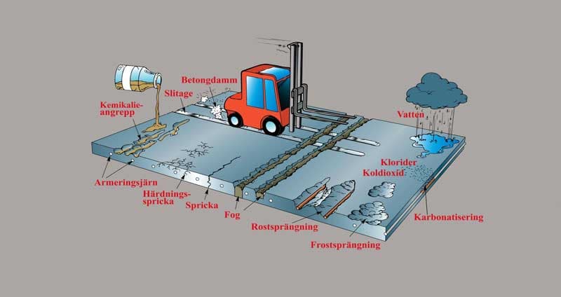 Den kartläggning som redovisas i denna rapport behandlar skador och skadeeffekter på betong och ytskydd för olika anl...